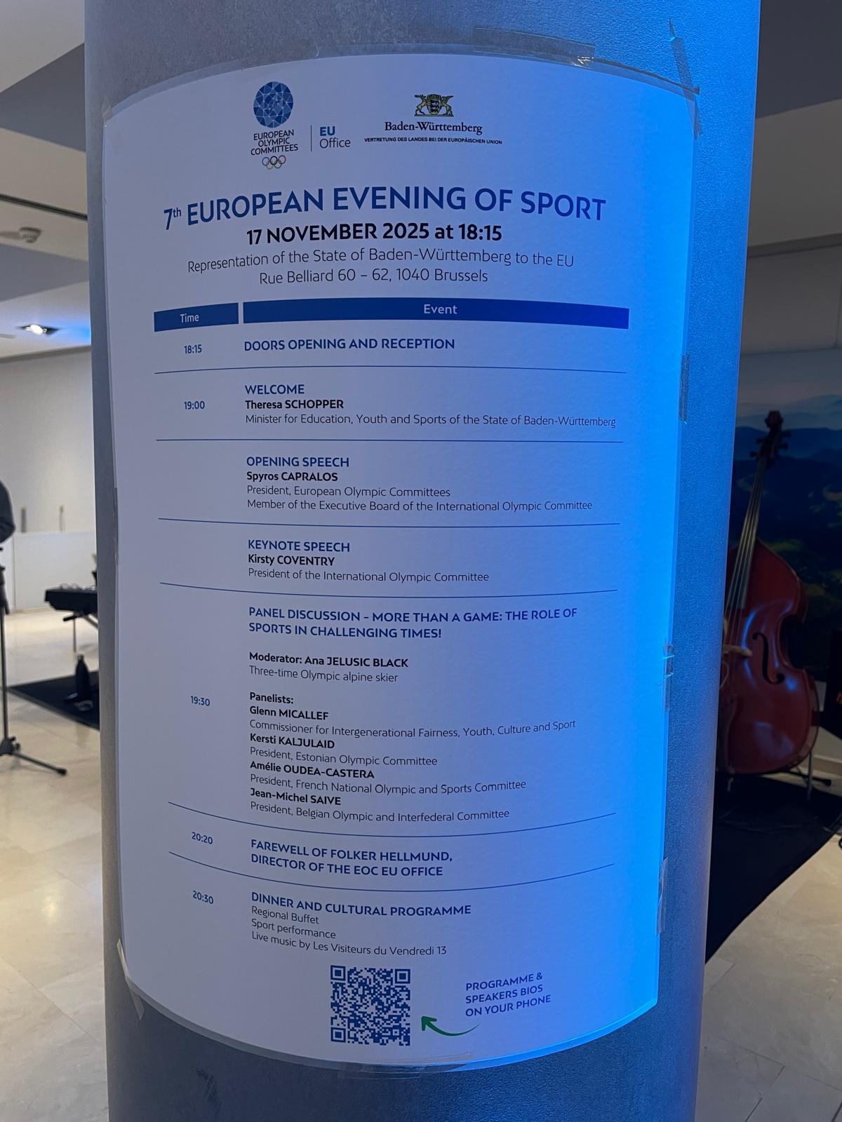 An dem Abend nahmen unter anderem IOC-Präsidentin Kirsty Coventry, der Präsident der Europäischen Olympischen Komitees Spyros Capralos und der EU-Kommissar für Generationengerechtigkeit, Jugend, Kultur und Sport Glenn Micallef teil. Alle 49 Europäischen Olympischen Komitees waren zu dem Treffen eingeladen, das dem Thema „Sport ist mehr als ein Spiel“ gewidmet war, um über die verbindende Rolle des Sports in einem komplexen und sich ständig verändernden globalen Kontext nachzudenken.
