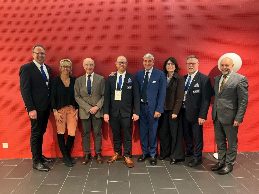 (auf dem Foto, von links nach rechts, Bradley Sandler - FICS, Melodie Hexhenry, Panathlon International, Pierre Zappelli, Präsident von Panathlon International – AIOS-Ratsmitglied, Martin Isaksson, FICS-Präsident – AIOS-Ratsmitglied, Bruno Molea, Präsident von CSIT und AIOS, Valeria Gherardini, CSIT-Präsidium, Nook Brian von FICS, Geoffry Borg von IMSA und AIOS-Generalsekretär. Auf dem nachfolgenden Foto auch Wolfgang Burghardt, CSIT-Generalsekretär)