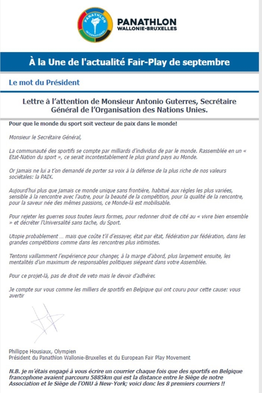 Panathlon International Club Wallonie-Bruxelles - Newsletter Septembre 2024