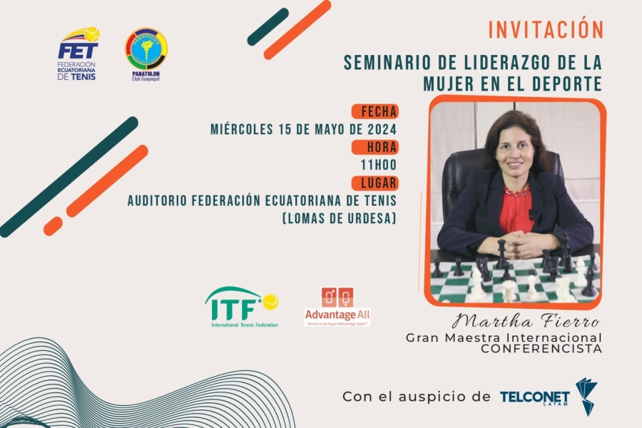 La Federación Ecuatoriana de Tenis y Panathlon Club Guayaquil organizarán el Seminario de Liderazgo de la Mujer en el Deporte, como parte de las iniciativas que impulsa la Federación Internacional de Tenis (ITF, por sus siglas en inglés) con su programa "Reconocimiento y Recompensa Advantage All" y el movimiento panathleta, bajo la rectoria de Panathlon Internacional.
