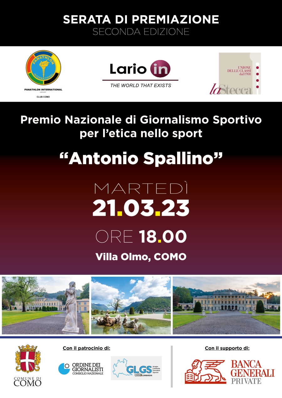 Per iniziativa delle Associazioni La Stecca di Como, Panathlon International Club Como e Lario In, con il patrocinio del Comune di Como, del Consiglio Nazionale dell’Ordine dei giornalisti e del Gruppo Lombardo Giornalisti Sportivi – Unione Stampa Sportiva Italiana, e acquisito il consenso da parte della famiglia Spallino, viene bandito un concorso giornalistico intitolato alla memoria di Antonio Spallino, campione olimpico di scherma, pubblico amministratore, uomo di cultura e di solidarietà sociale, già presidente delle Associazioni promotrici del Premio, che viene assegnato con cadenza biennale.