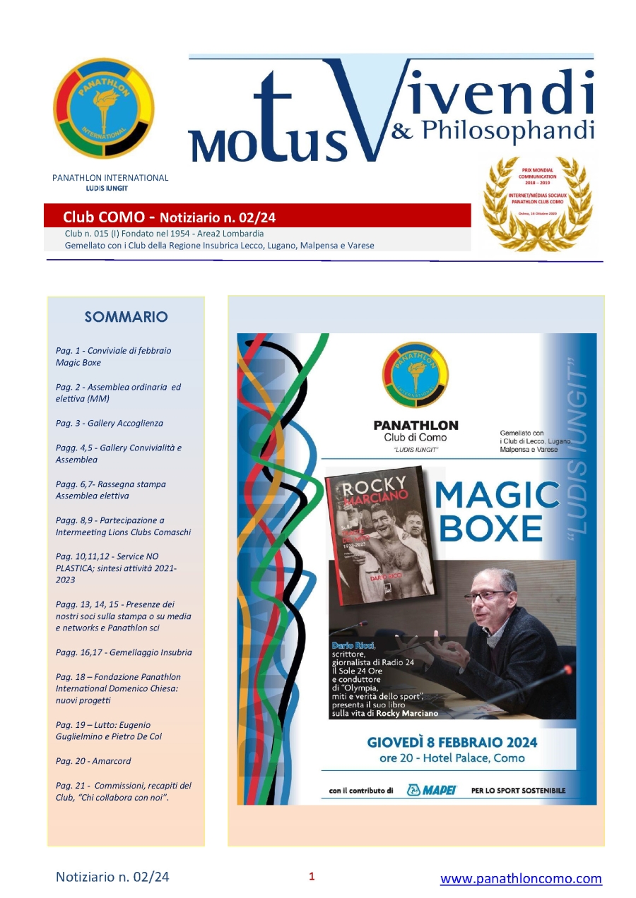 Panathlon International Club Como - Motus Vivendi & Philosophandi 02-24