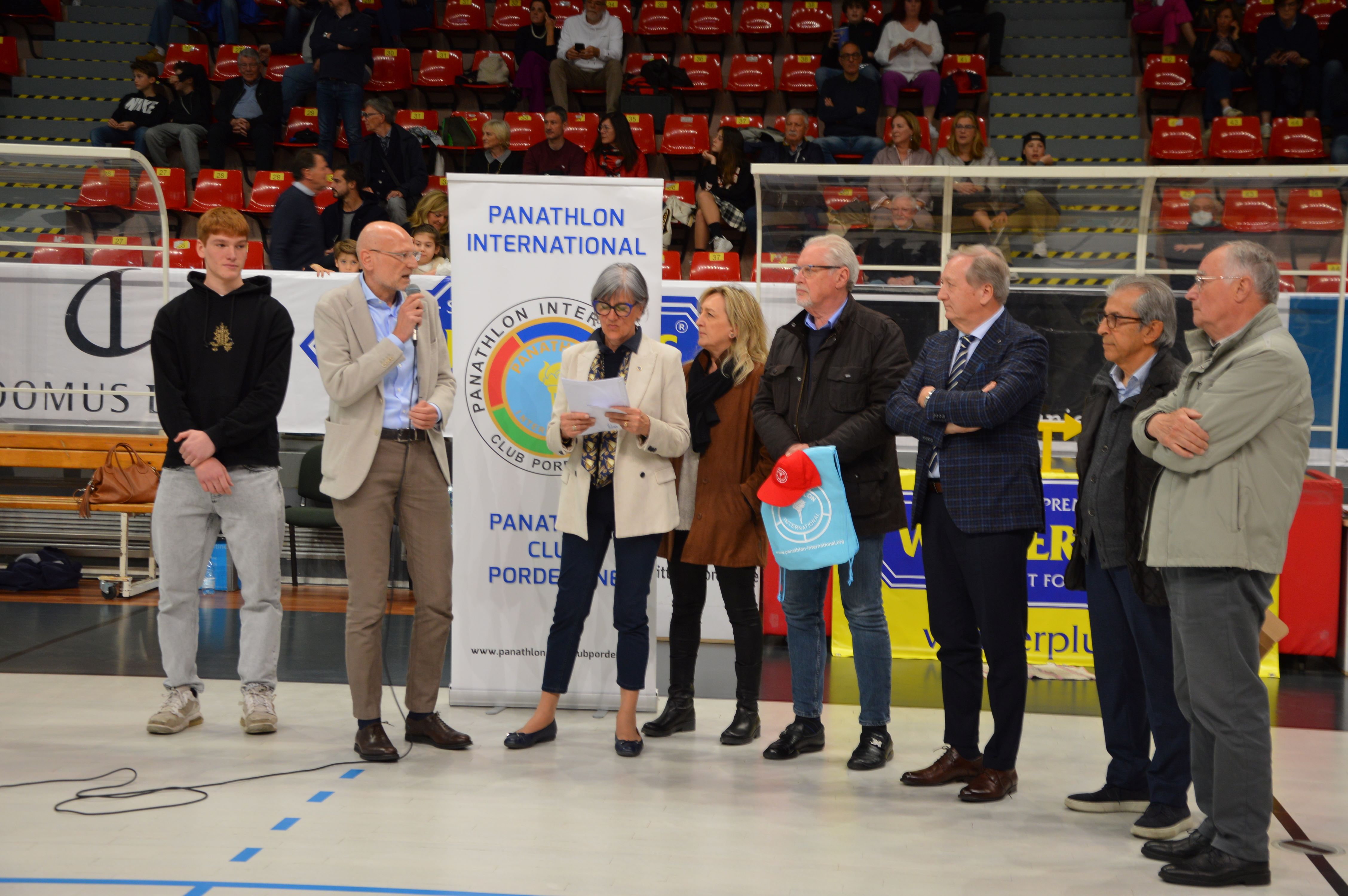 Il Presidente del Panathlon International Club Pordenone, Massimo Passeri, e il Governatore dell’Area 12 FVG, Paolo Perin, hanno consegnato il riconoscimento a Giacomo Burei durante l’intervallo della partita del Campionato CGOLD Horm Pordenone – Pizeta Express Carrè alla presenza del Delegato Provinciale FIP Renzo Varuzza, di un folto pubblico e di molti soci panathleti, festeggiato dalla sua squadra e dall’allenatore.