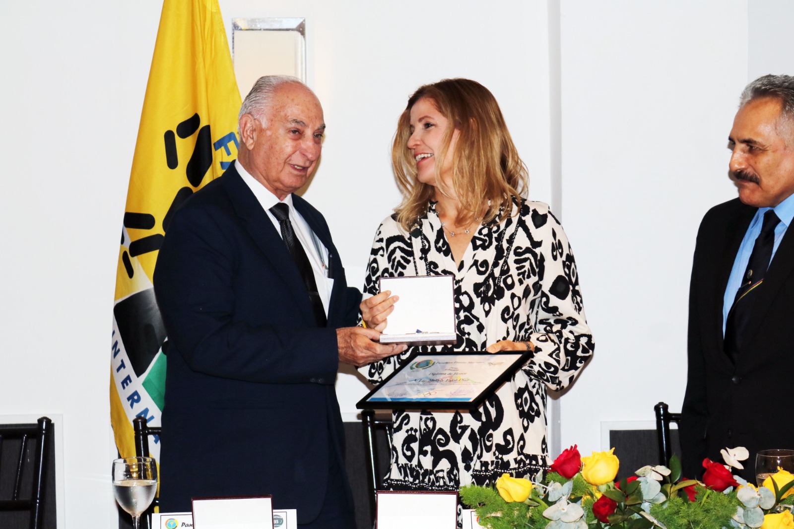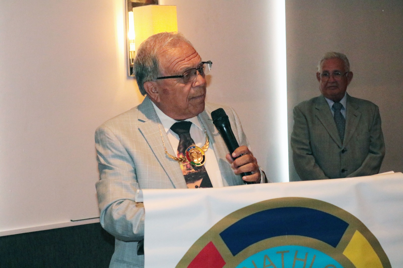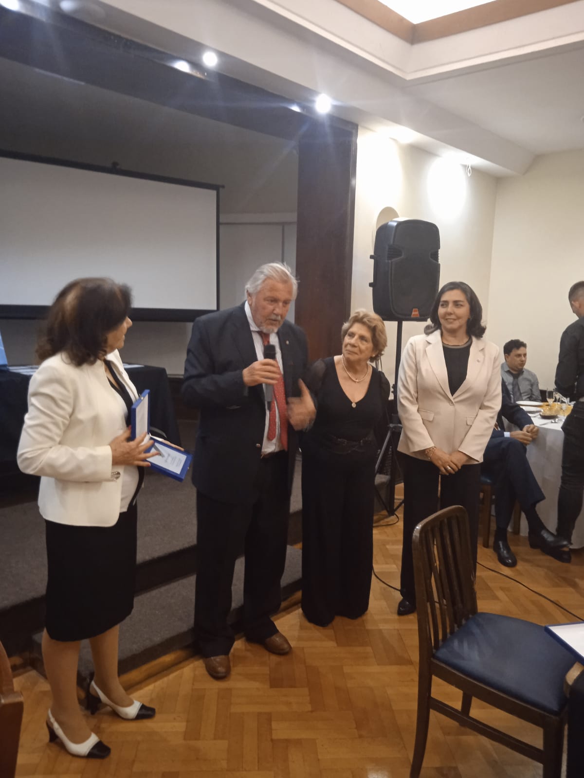 Giorgio Chinellato ehrte am Abend die drei Gründungsmitglieder Luigi Balestra (dessen Vater Demetrio Balestra im Gründungsjahr 1975 Präsident vom Panathlon International war), Edwin Rudolf und Robert Wälle zur 50 Jahre dauernden Mitgliedschaft im Panathlon-Club Luzern.