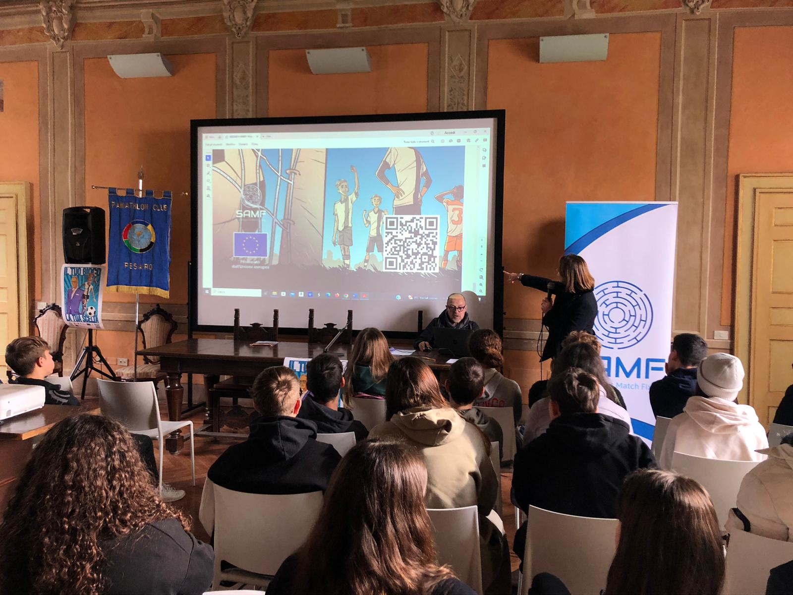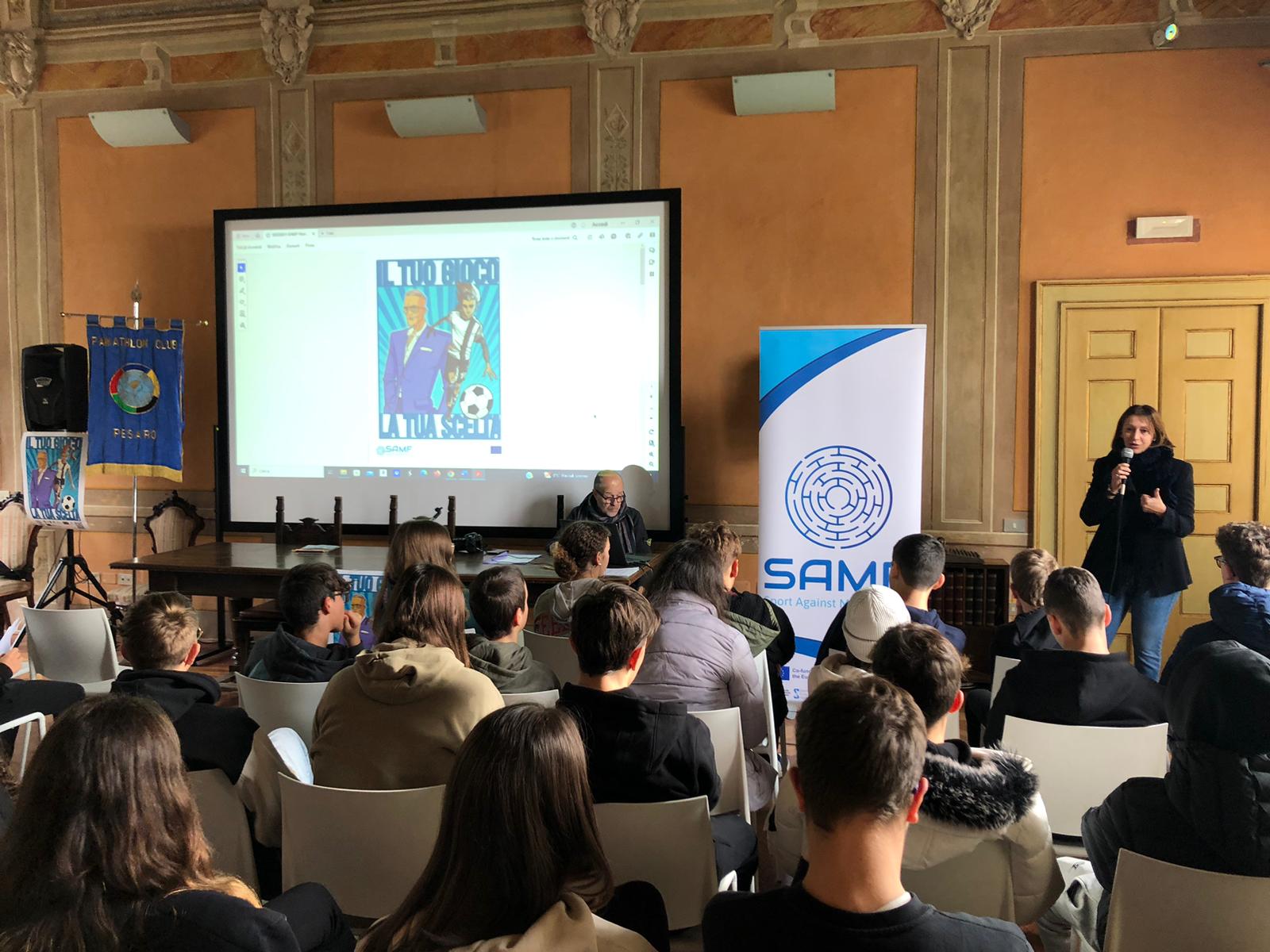 Aus diesem Grunde hat der Panathlon Club Pesaro gemeinsam mit Frau Dr. Barbara Rossi am Dienstagmorgen, den 28. November im Istituto Agrario “A. Cecchi” in Pesaro mit 60 fünfzehnjährigen Schülern das Ausbildungstreffen des Projekts SAMF gehalten.