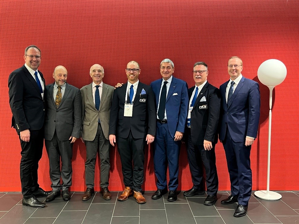 (auf dem Foto, von links nach rechts, Bradley Sandler - FICS, Melodie Hexhenry, Panathlon International, Pierre Zappelli, Präsident von Panathlon International – AIOS-Ratsmitglied, Martin Isaksson, FICS-Präsident – AIOS-Ratsmitglied, Bruno Molea, Präsident von CSIT und AIOS, Valeria Gherardini, CSIT-Präsidium, Nook Brian von FICS, Geoffry Borg von IMSA und AIOS-Generalsekretär. Auf dem nachfolgenden Foto auch Wolfgang Burghardt, CSIT-Generalsekretär)