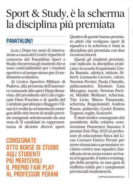 Published in Neues aus den Clubs und die BereichePanathlon Club Padova - Concorso PANATHLON SPORT & STUDY