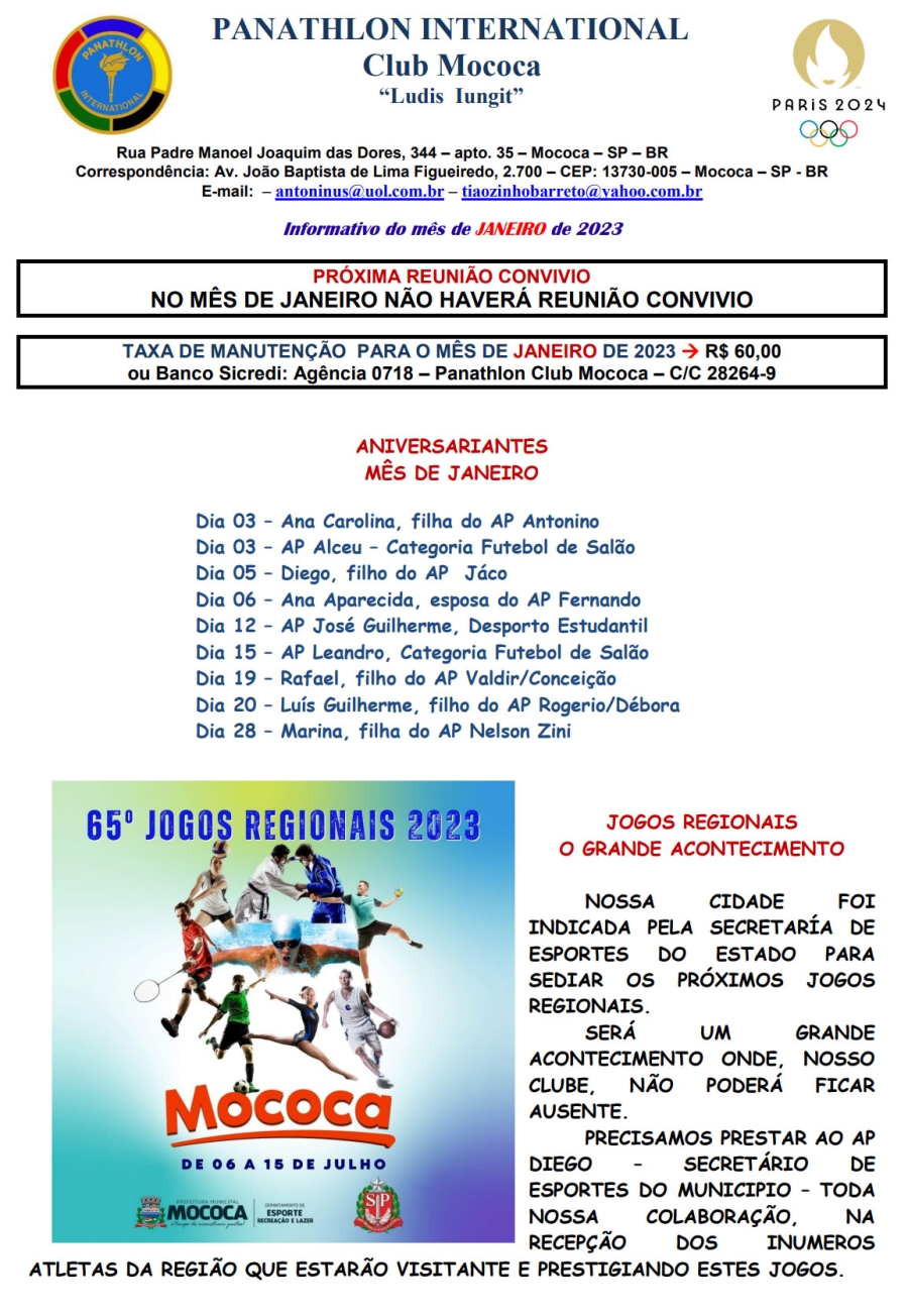 Panathlon International Club Mococa - Janeiro 2023