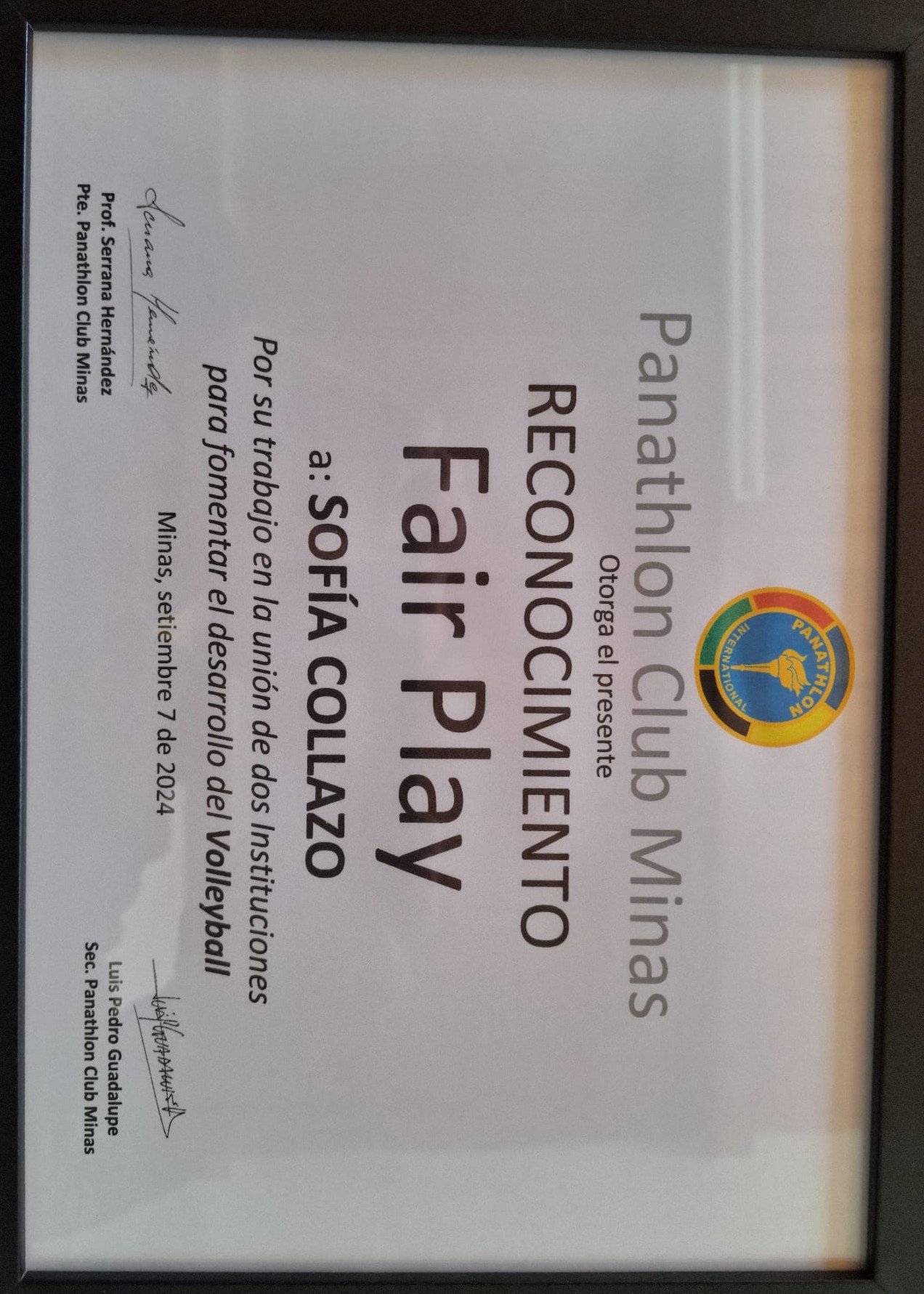 Entendiendo que esa actitud constructiva y generosa en pos del bien común mayor como es el desarrollo internacional del Volleyball, representa una clara muestra de juego limpio, es que Panathlon Club Minas reconoció a ambos Entrenadores como merecedores del reconocimiento "Fair Play"