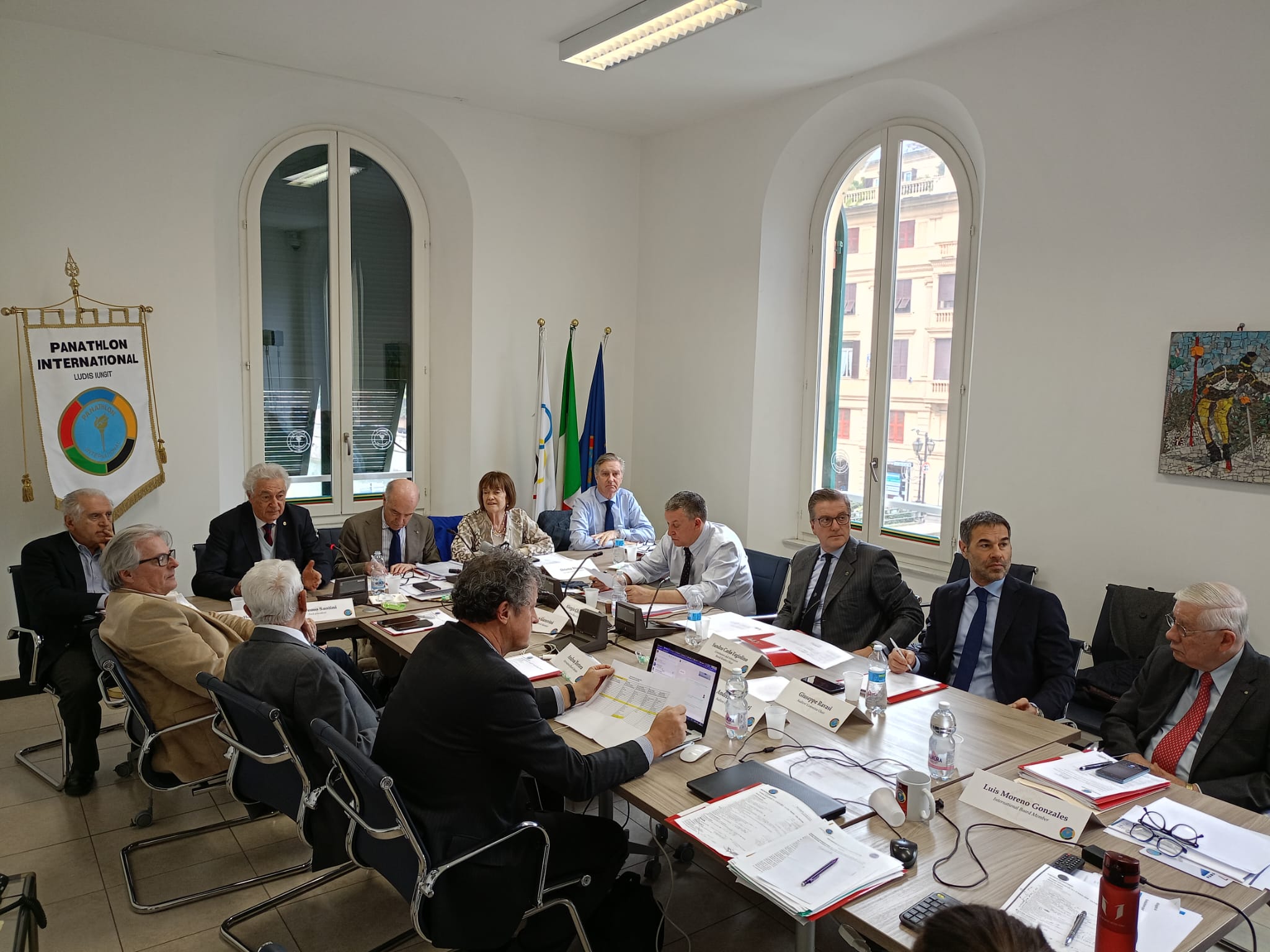 Die folgenden Punkte an der Tagesordnung werden besprochen: Die in der Generalversammlung vorzustellenden Berichte, die Bilanz und der Haushaltsplan zusammen mit dem Vorschlag für die Mitgliedsquote für die nächste Zweijahreszeit, die Organisation der Generalversammlung und der Podiumsdiskussion in Agrigent, die Initiativen für die Olympischen Spiele in Paris, die Einsetzung einer Ethikkommission, das Partnerschaftsabkommen mit IDF, die Zustimmung zu Erasmus-Projekten, die Idee, ein Maskottchen für PI zu erfinden.