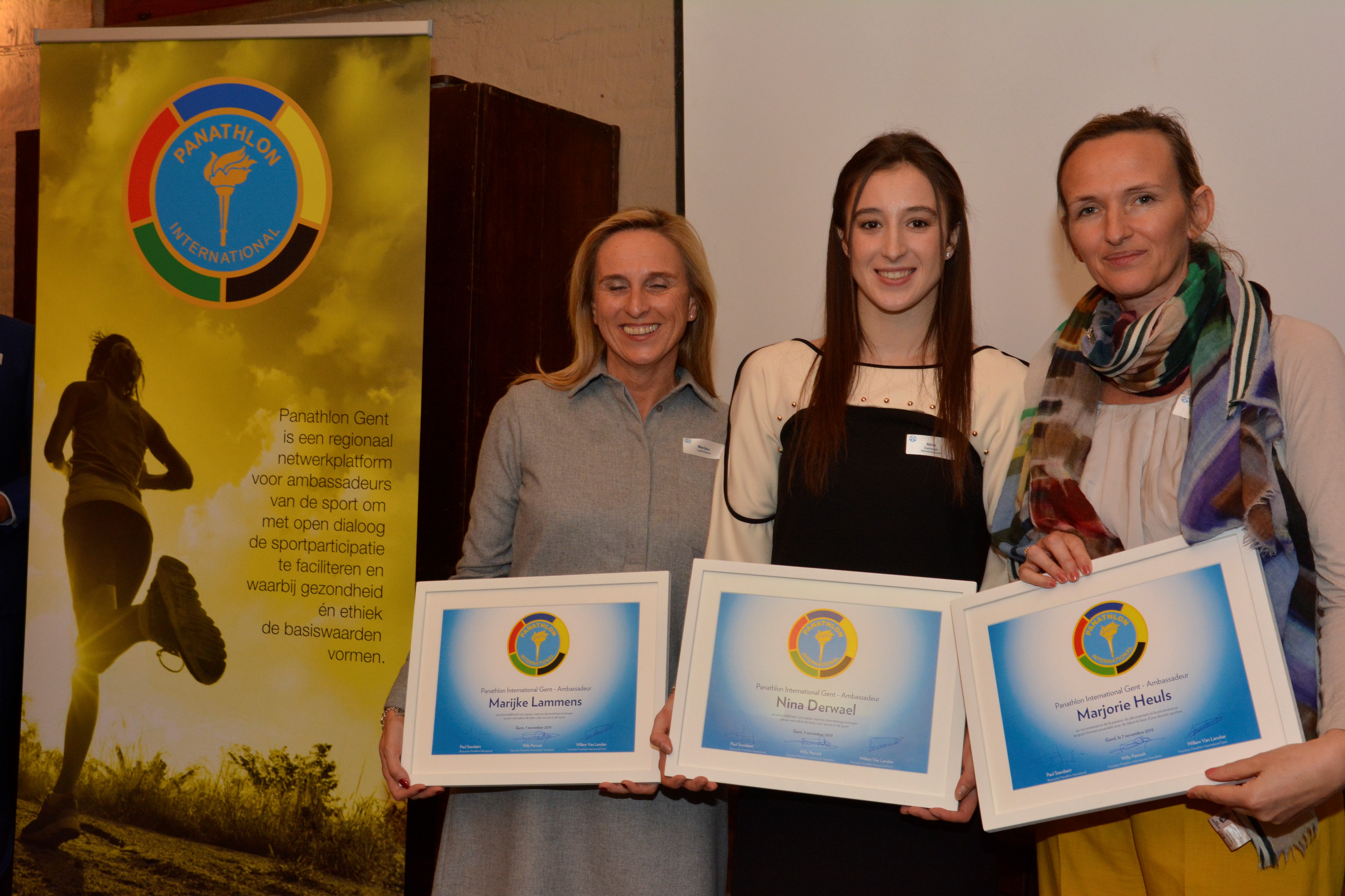 Nina's mother, Mrs. Marijke Lammens received the Panathlon award out of the hands of Mrs. Sofie Bracke, alderman for sport of Gent. Mrs. Bracke pointed out the importance of a warm nest and the care of parents to lead children at early age into sport. But also, to support them through their success and disappointments. Parents, grandparents have an absolute important role by guiding children within a fair a respectful sport.