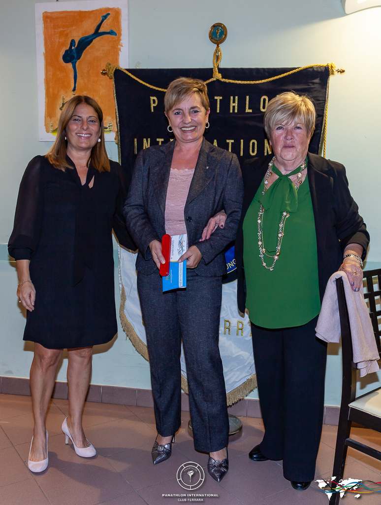 Durante la serata il Club ha avuto modo anche di presentare tre nuovi soci: Linda Genesini, mamma della tennista Giulia Bassini, da anni impegnata per l’inclusione ed i diritti, in ambito sportivo e non solo, delle persone con sordità; Erica Cavalieri, presidente della A.s.d. Corriferrara, associazione sportiva organizzatrice, tra le mille attività proposte, della Ferrara Marathon e, grazie all’accordo recentemente siglato con il Comune, “custode” di una sede sociale posta all’inizio del percorso podistico classico delle Mura, strategica per i servizi forniti (cardioprotezione compresa) a chi utilizza questa stupenda palestra a cielo aperto; Enrico Venturini, presidente del Centro Sportivo Italiano di Ferrara, ente di promozione sportiva riconosciuto dal CONI e attraverso il quale si è impegnato in prima persona per favorire la funzione sociale dell’attività sportiva.
