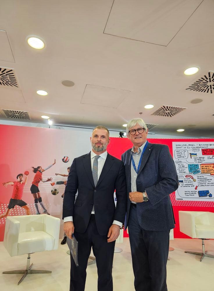 A highlight of the program was the high-level panel discussion focusing on strengthening the European Sport Model through solidarity, values, and competitiveness. The panel featured distinguished speakers including MEP Zdrojewski, EU Commissioner Glenn Micallef, and Laura McAllister, Vice President of UEFA. Their insights were truly inspiring, and it was a great opportunity to engage with them on supporting these ambitious projects.