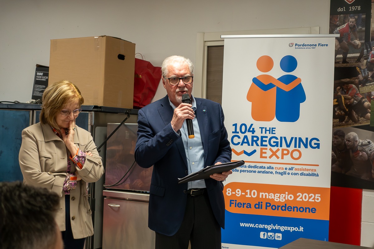 The press conference for the “104 - The Caregiving Expo” Fair was held today at the Rugby Pordenone clubhouse. This unique and extraordinary event brings together the entire world of care for disabled and frail people at the Pordenone exhibition centre. In the presence of the mayor of Pordenone and the President of the Chamber of Commerce of Udine and Pordenone, the president of the Pordenone Fair, Renato Pujatti, presented this innovative event, which aims to be a trailblazer in a very important and delicate sector. There will be 170 exhibitors, including the most important companies in the sector, associations dealing with these issues, doctors and nurses, with meetings, seminars and demonstrations aimed at the public, professionals and private individuals who wish to attend. Admission is free upon registration.