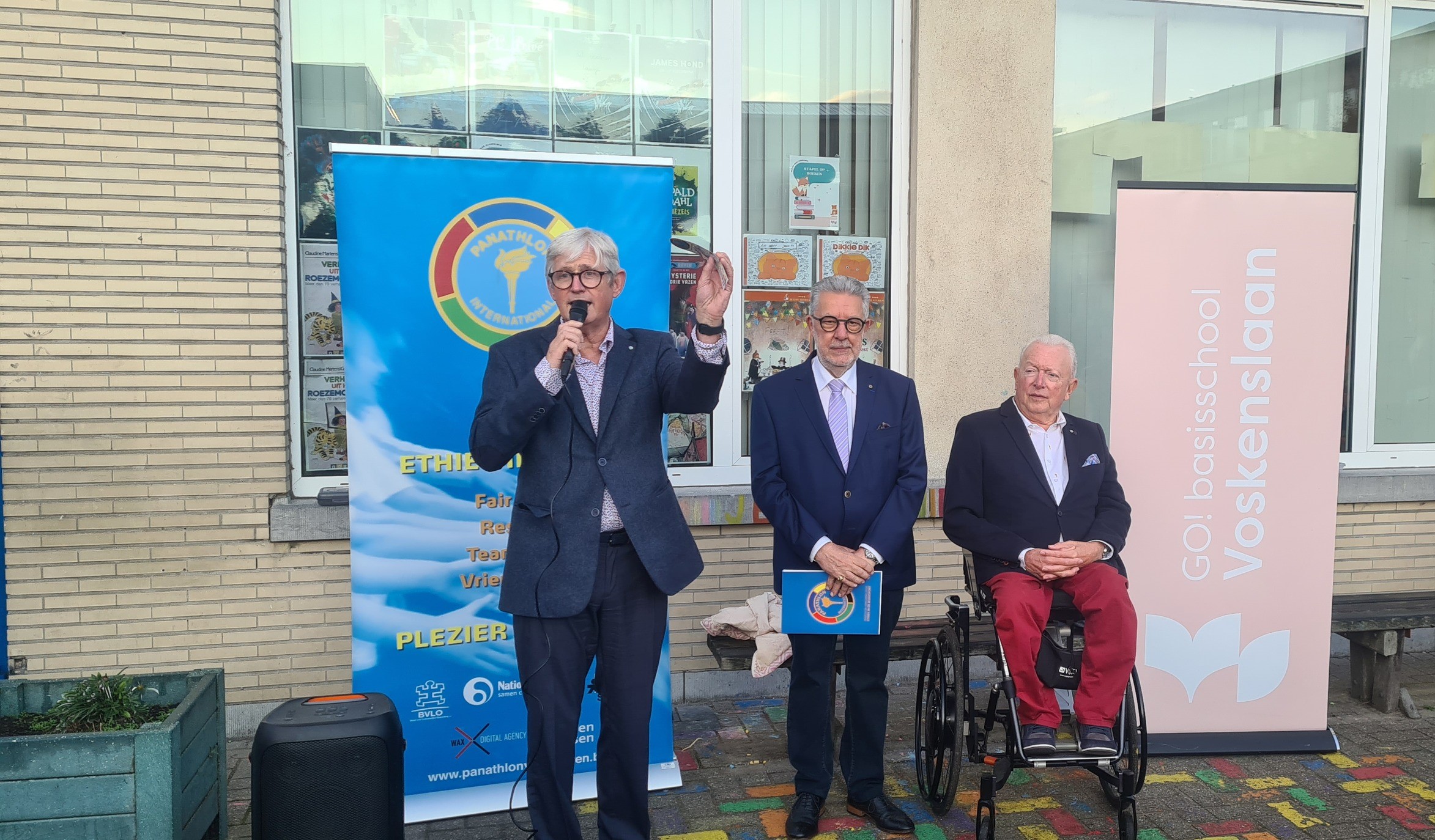 This year, the board of Panathlon International Vlaanderen was invited to the GO! Primary School Voskenslaan to attend the kick-off of their European Week.